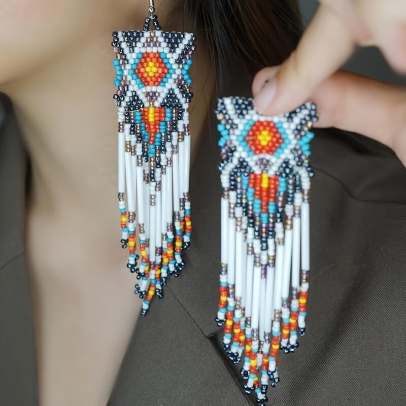 Be the first to review “Bohemian Beaded Tassel Earrings, Square Shape,White Rice Beads” Cancel reply