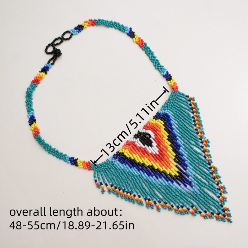 Be the first to review “Bohemian Beaded Necklace,Tassel Necklace,Exaggerated design, Vintage Hand-Woven” Cancel reply
